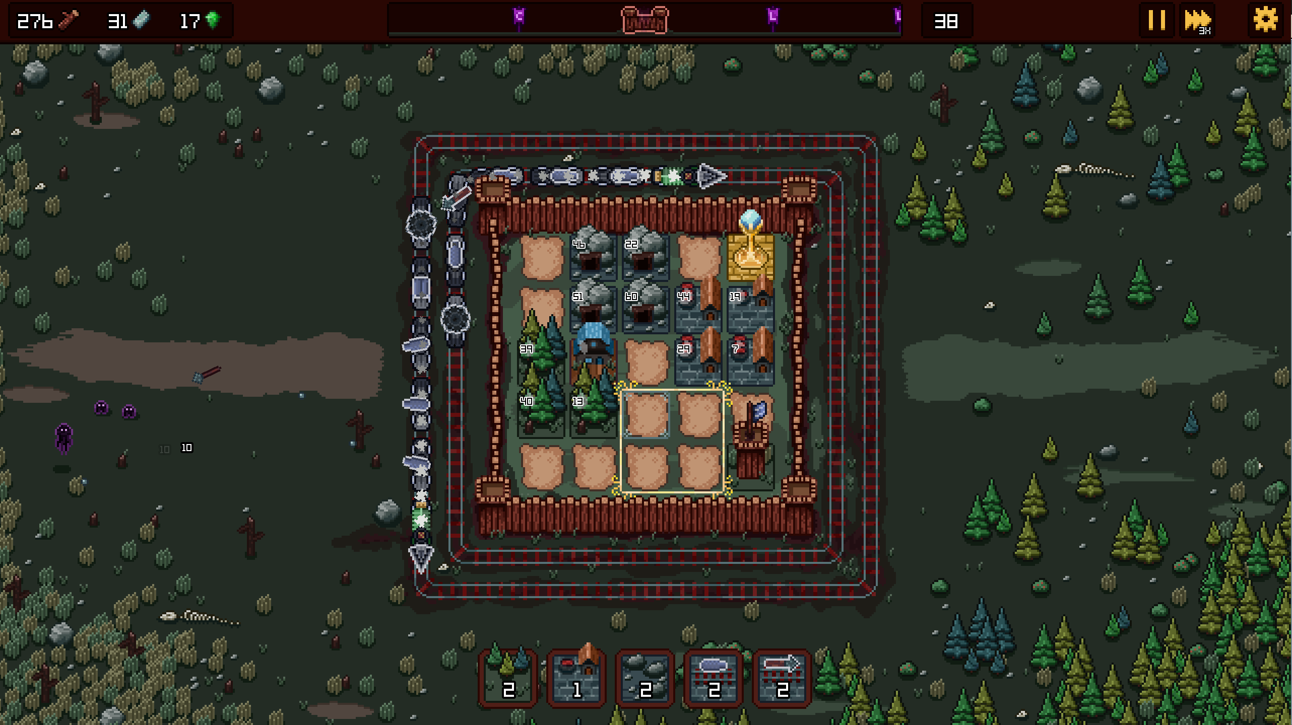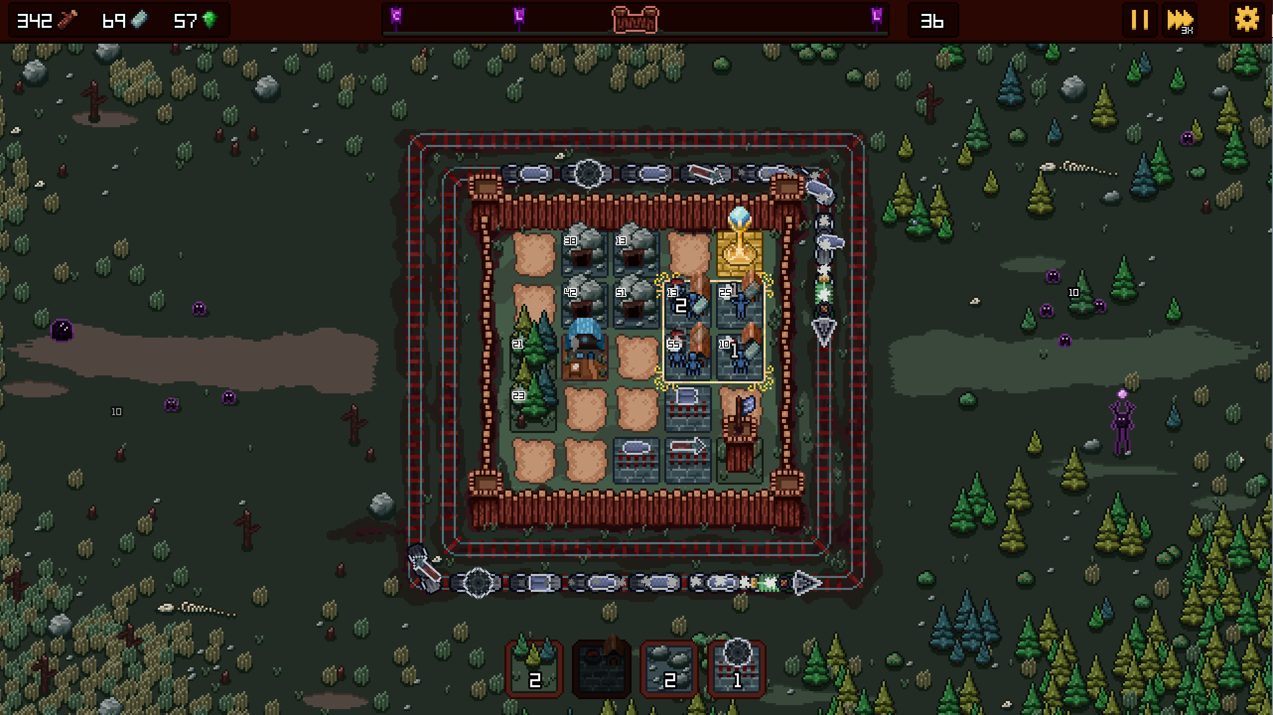 If I were to expand upon it, was there anything you would’ve liked to see or have included? I have some thoughts on more structures, like a windmill that activates the tile in front of it periodically. Or research buildings that upgrade the strength/power of the train cars.